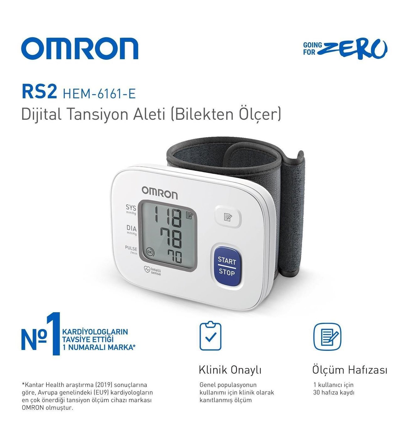 Omron RS2 (HEM-6161-E), bilekten ölçüm yapan, klinik olarak onaylanmış tam otomatik bir dijital tansiyon aletidir. Pratik ve kompakt tasarımı sayesinde hem evde kullanım hem de seyahatler için uygundur.